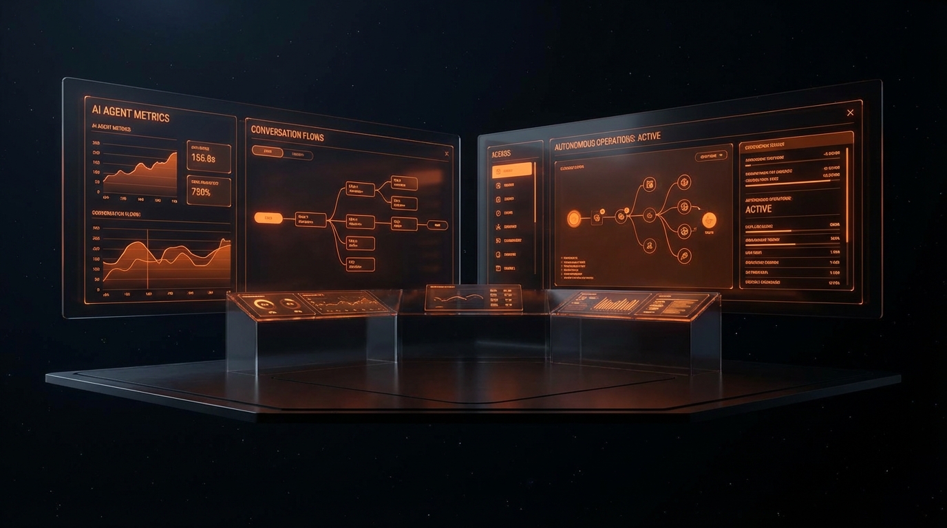 O estado final. Um time de agentes rodando 24h por dia dentro do seu negócio, executando o seu processo com a sua qualidade, reportando pra você, escalando sem contratar mais gente. Você abre o dashboard de manhã e vê o que aconteceu enquanto dormia.